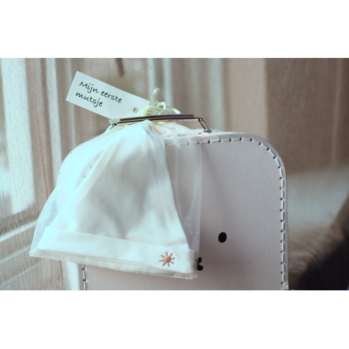 Onze bestseller in tijdloos wit: het babymutsje met logo.